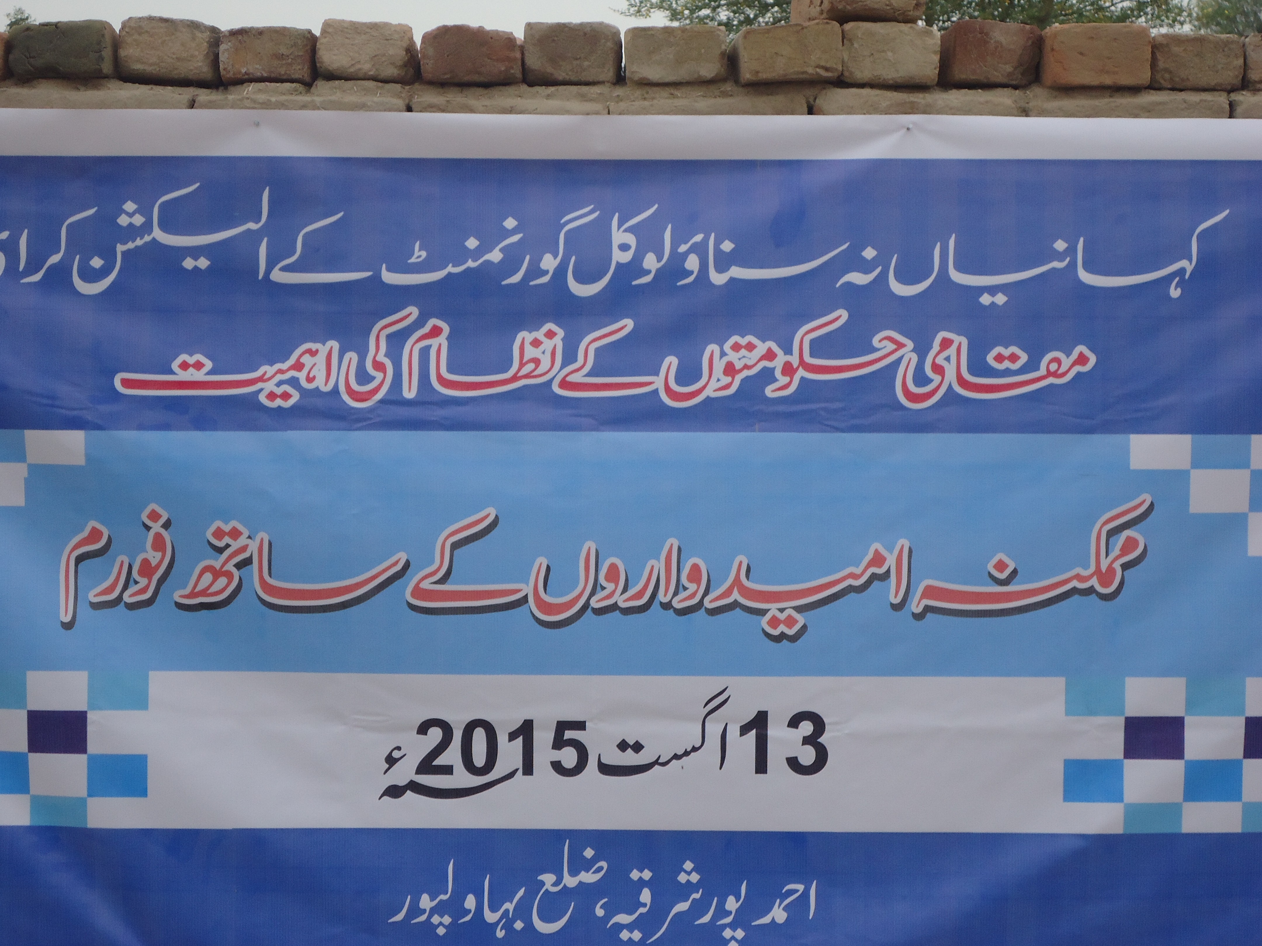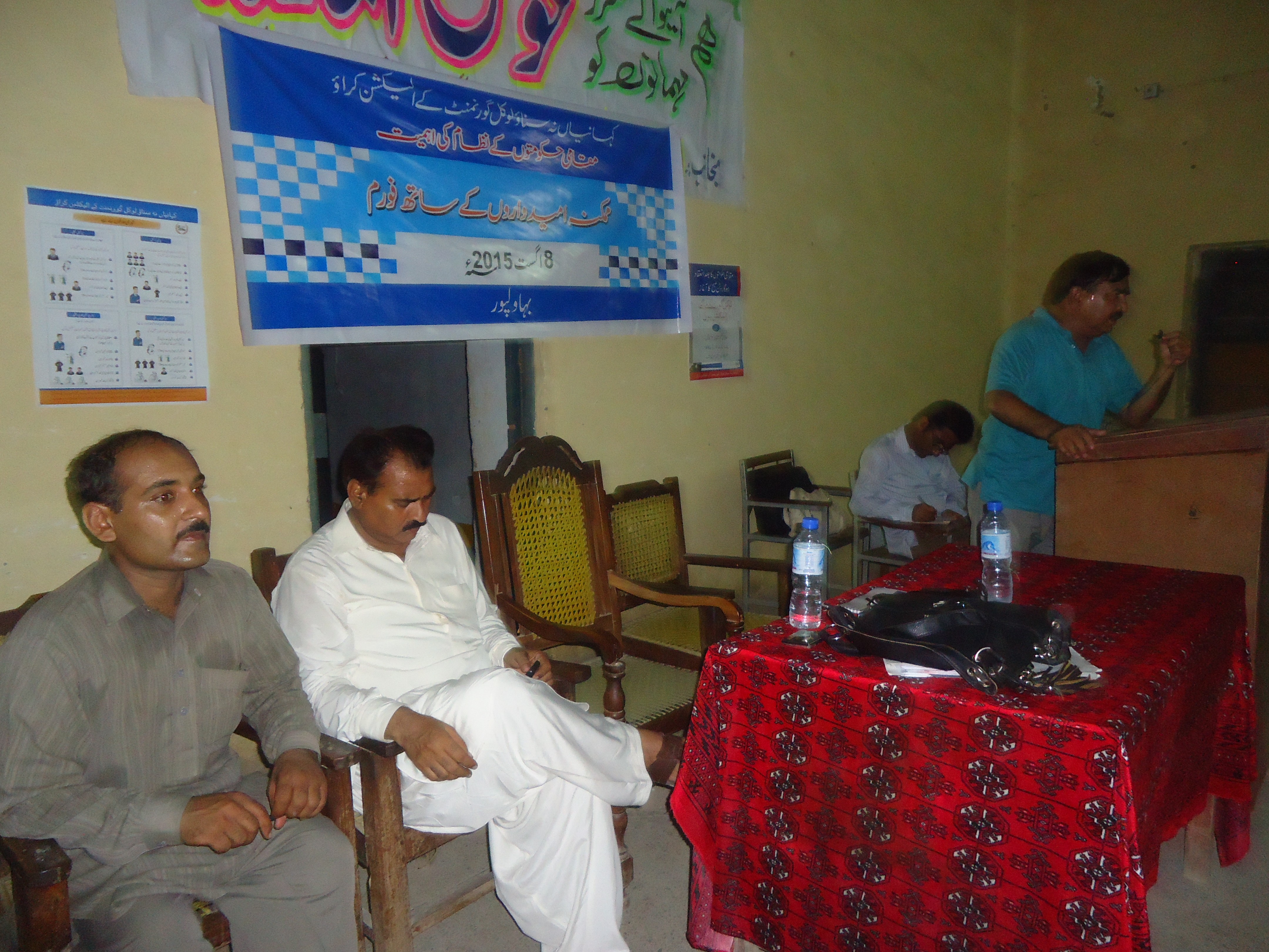 PRWSWO in partnership with USAID/TDEA implemented a six month project in year 2015 under Grant cycle 6 of the Citizen’s Voice Project on Improving Local Government System in District Bahawalpur and implemented number of activities that included Capacity building workshops for youth activists, Public Forums, Citizens Assemblies, Interactive Conferences, Awareness Raising Walk, Debate competitions, Press Conference and Radio talk shows etc.